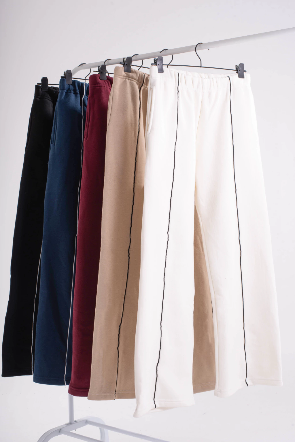 Pantalón de frisa de corte recto, con vivo en la parte delantera y elástico en la cintura.